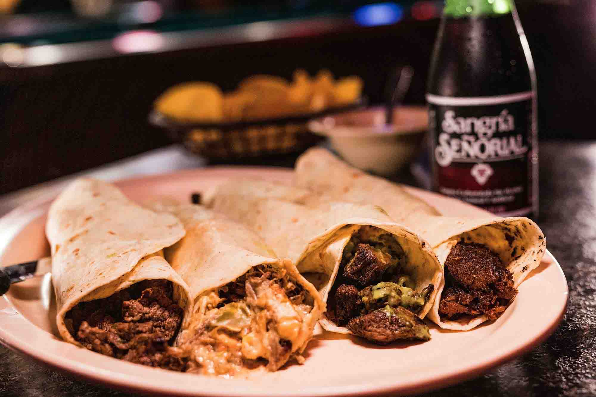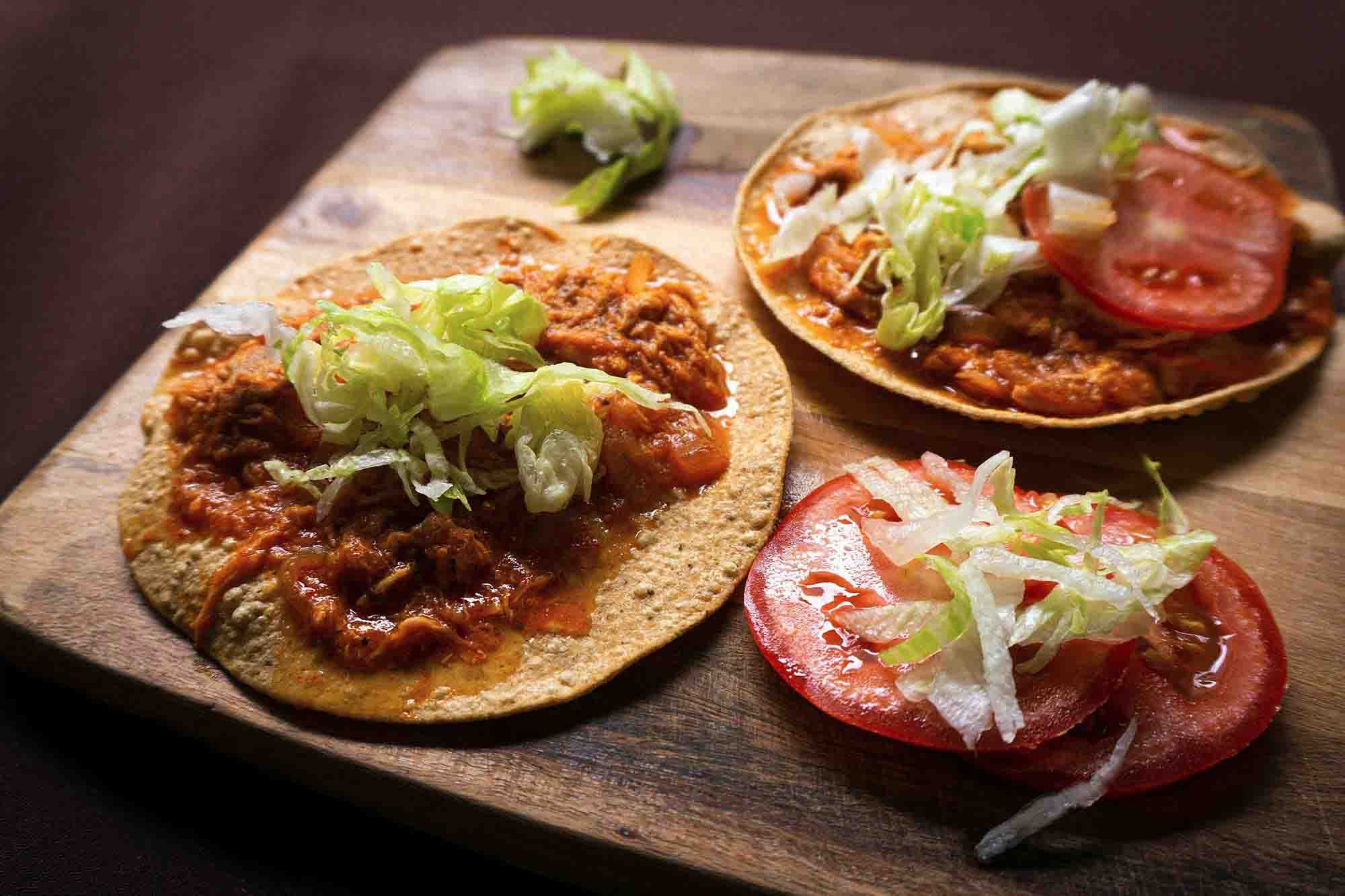 Three hard shell tacos with your choice of shredded chicken, ground beef, or pork. Topped with lettuce, tomatoes, and cheddar cheese. Served with Mexican rice, refried beans, and sour cream on the side.